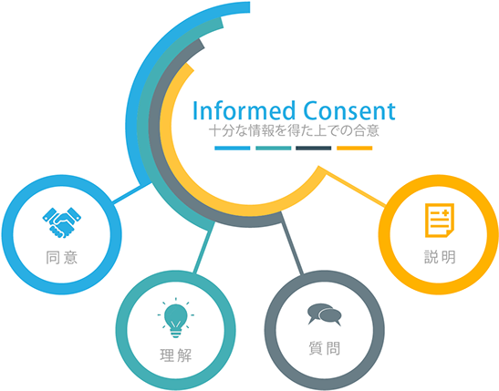 インフォームド・コンセントとは医師から病気や治療方針の説明を受け、理解した上でその医療行為を受けるかどうか判断することです。